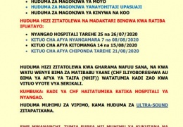 Halmashauri ya Wilaya ya LINDI inaendelea na ratiba yake ya kutoa huduma za matibabu ya kibingwa katika vituo vyake. Huduma hiyo imepangwa kufanyika katika Kambi nne ndani ya Halmashauri ya Lindi/M...